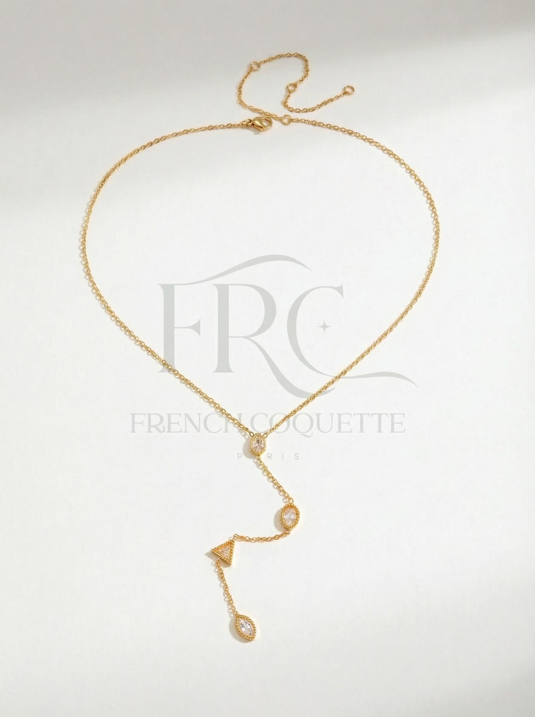+ A delicate layering necklace featuring a fine chain with elegant drop details. Feminine, refined, and perfect for everyday minimal styling.